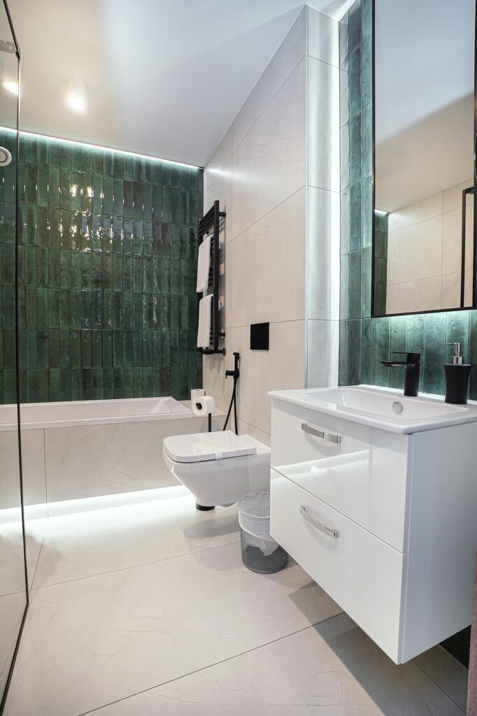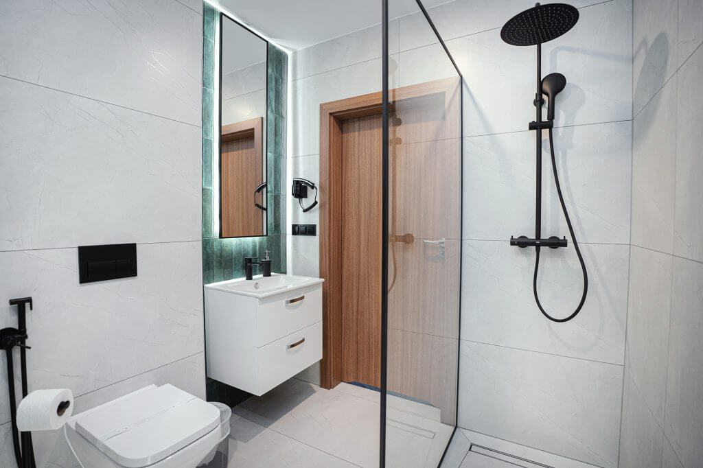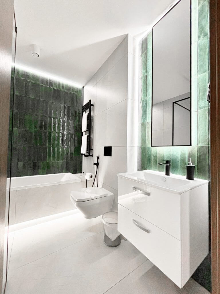 W **prywatnej łazience** czekają na gości wysokiej jakości kosmetyki, puszyste ręczniki, suszarka do włosów oraz przestronna wanna – zapewniającą relaks po długim, pracowitym dniu.