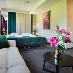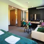 Pokój **DeLuxe** wyposażony jest również w nowoczesne udogodnienia, takie jak **klimatyzacja**, bezpłatne Wi-Fi, duży telewizor z dostępem do kanałów satelitarnych i wiele, wiele więcej. Na gości czeka również zestaw do parzenia kawy i herbaty oraz codziennie uzupełniany zestaw świeżej wody mineralnej.